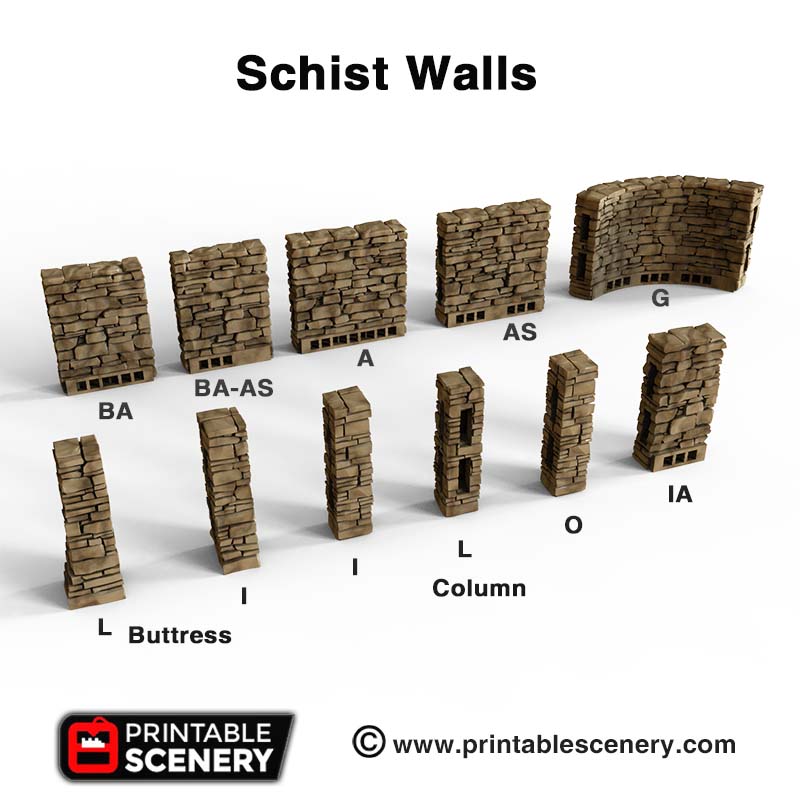 The Schist Walls pack contains various tiles that can be clipped together. This pack is part of the Clorehaven City building line of building tiles and is designed to be used with the Tudor walls, Rustic Wooden and Rustic Stone floors. This set is compatible with all other OpenLOCK products.